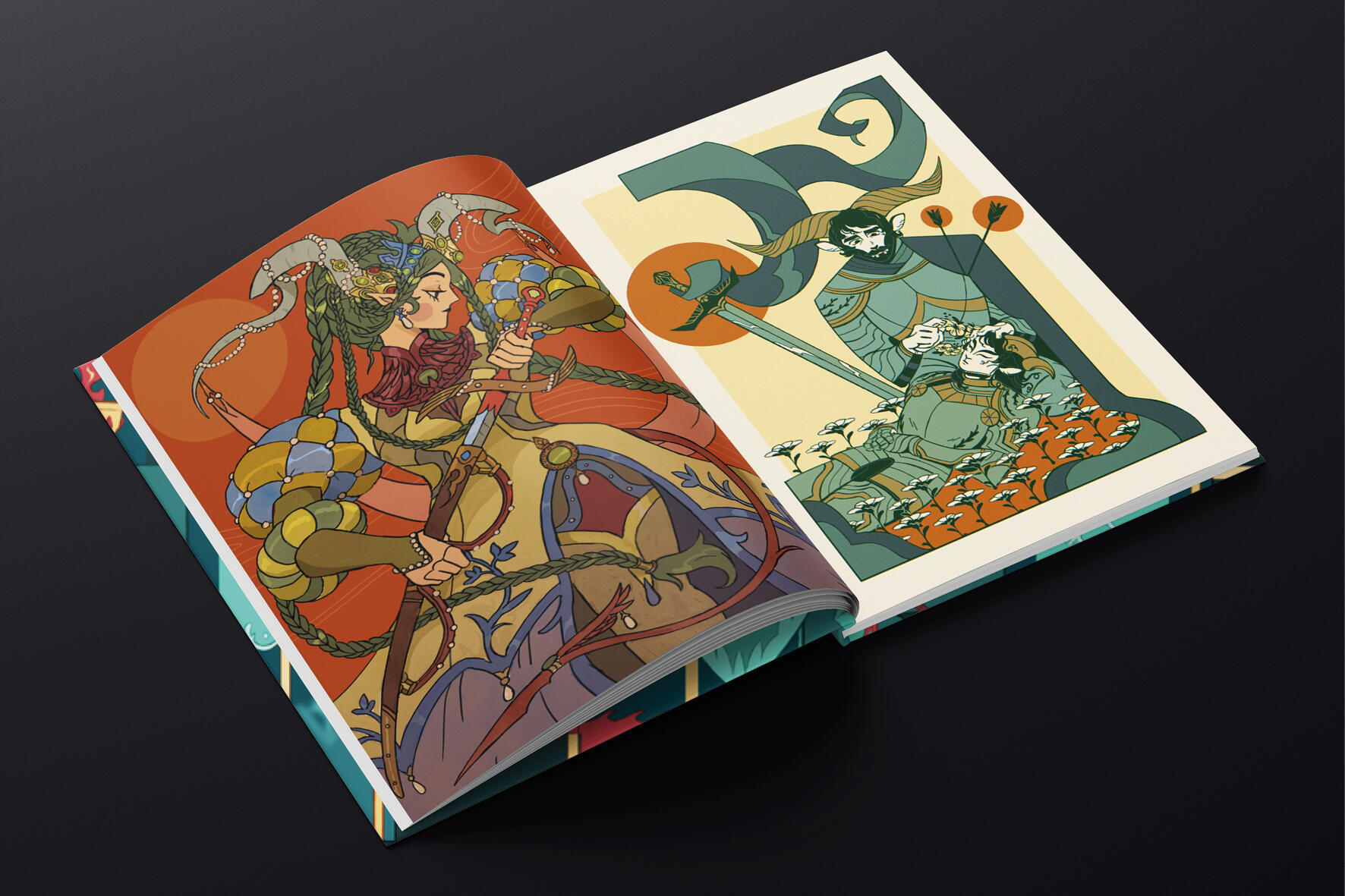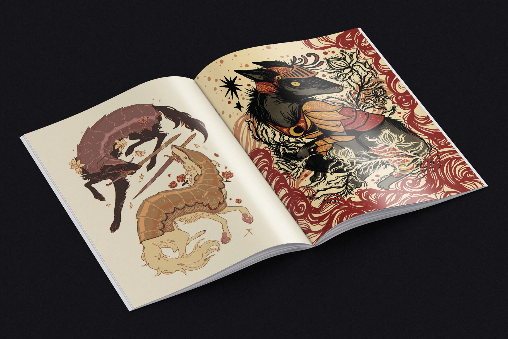 Charivari, Masks and Swords is a collaborative artbook about carnivals, circuses, and other festivities... but with swords! It features 50 international artists who all created exclusive illustrations for this project.